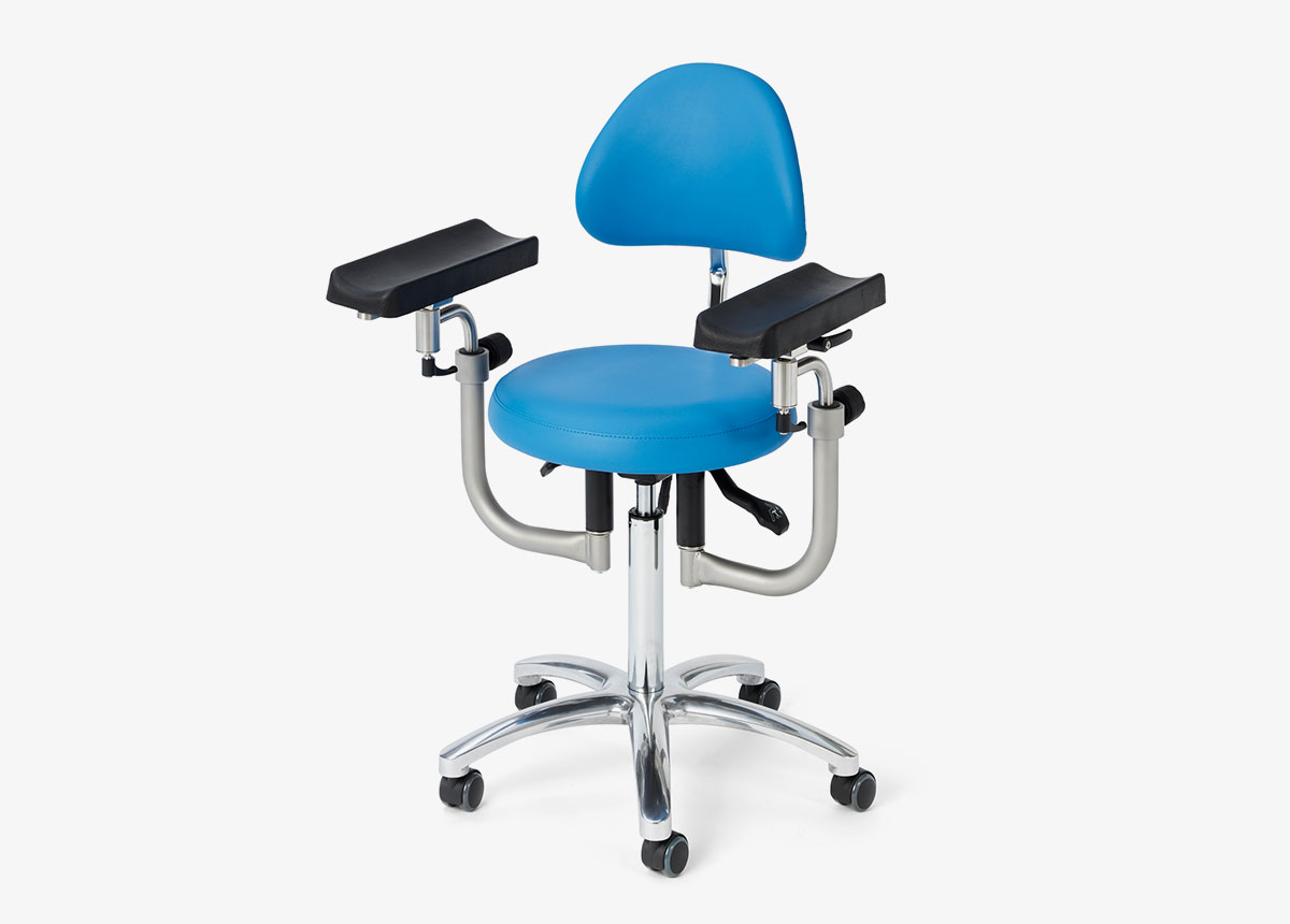 As an option, the ak445 doctor’s stool can be fitted with pre-shaped multi-directional multi-joint armrests. This allows even finer adjustment of the forearm/hand support during an operation. The AKRUS upholstery is manufactured to the highest quality. Various colors are available to match the clinic or practice environment. The ak445 doctor’s stool is delivered fully assembled and the use of high-quality components ensures many years of reliable use when used as intended. In the event of a service request, authorized medical technology dealers are available.