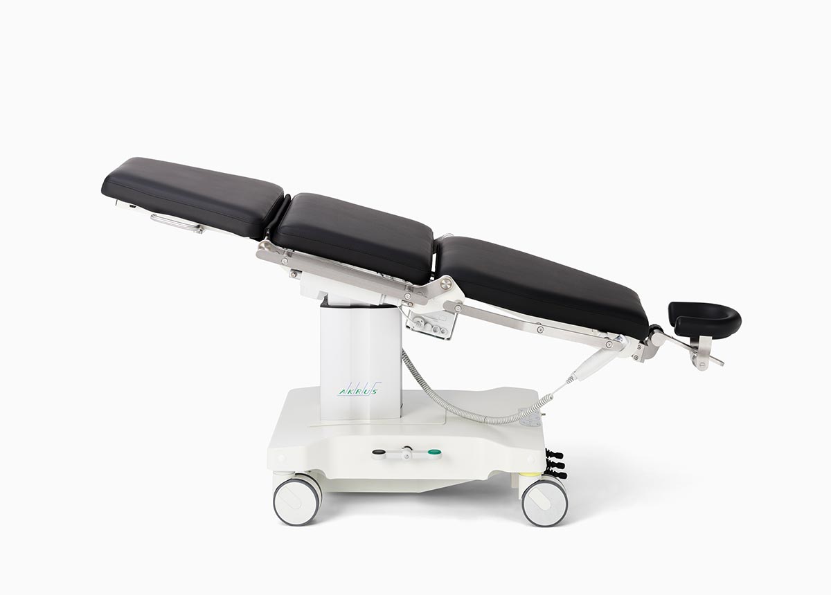 Os elementos da cabeça, costas, assento e pernas podem ser ajustados individualmente. A altura do assento é regulável entre 61 cm e 96 cm, e o curso do apoio de cabeça é de 50 mm. Estão disponíveis colunas de elevação padrão (até 200 kg de peso do paciente) ou colunas de elevação reforçadas (até 300 kg de peso do paciente). A unidade de controlo é de disposição clara e inclui um botão liga/desliga, indicador de capacidade da bateria e botões para controlar os segmentos motorizados das pernas, assento, costas e cabeça. Seis funções de memória facilitam o acesso rápido a configurações repetitivas. Em caso de emergência, a superfície de repouso pode ser colocada na posição de choque com o toque de um botão.