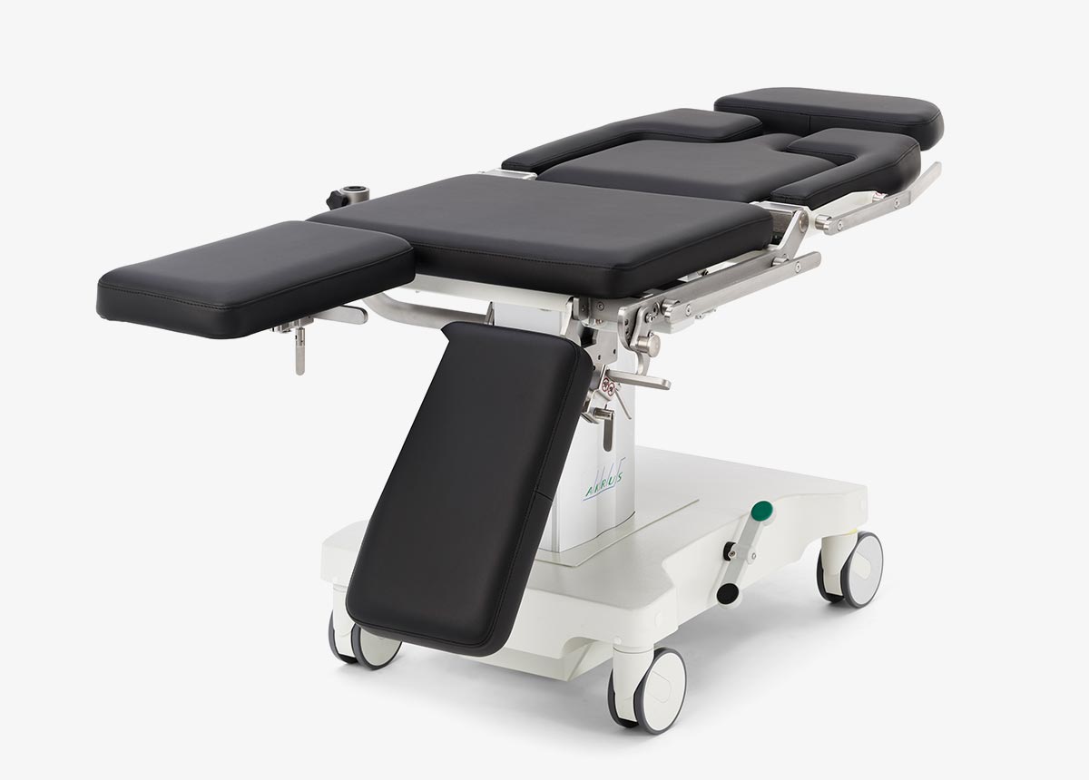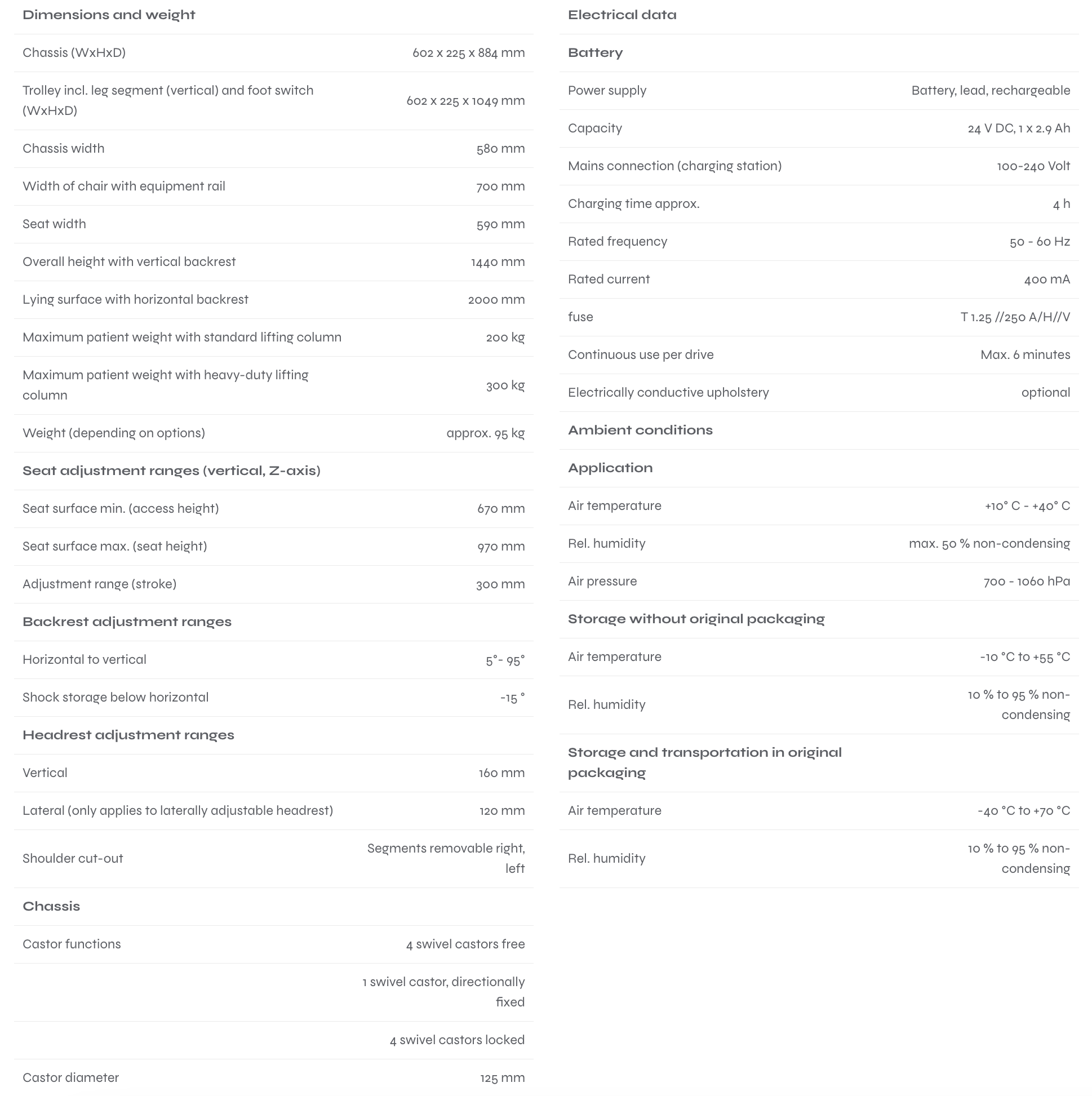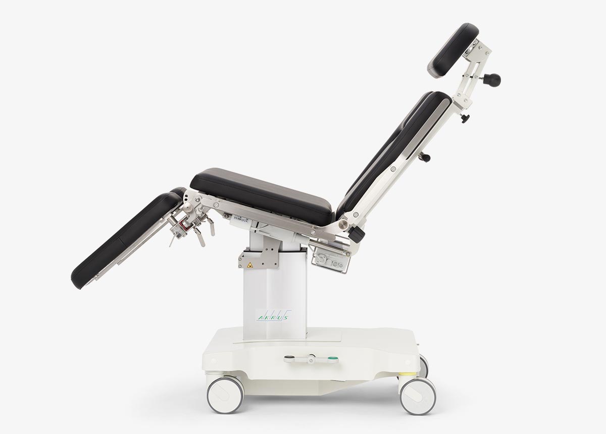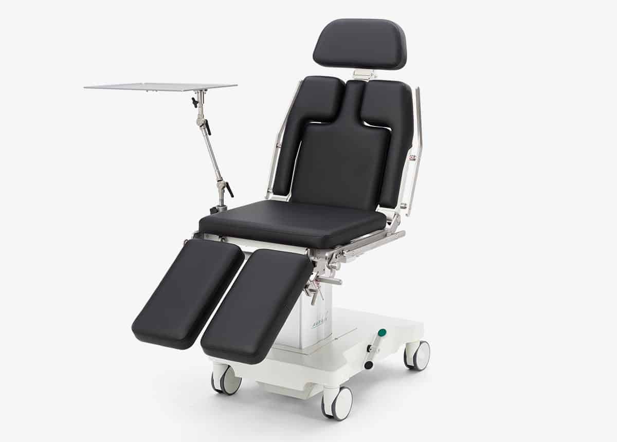 A cadeira cirúrgica móvel sc5010 SEK (ombro, cotovelo, joelho) permite a realização de cirurgias ambulatoriais em grandes articulações, incluindo operações nas áreas de ortopedia e artroscopia. O design flexível desta cadeira também possibilita a sua utilização em dermatologia e cirurgia plástica estética. Adaptada à apresentação de grandes articulações, o ajuste de altura do assento (de 63 cm a 98 cm), bem como as opções de regulação individual dos apoios de cabeça, costas, torso e pernas, facilitam o ajuste preciso do campo operatório. Estão disponíveis colunas de elevação padrão (até 200 kg de peso do paciente) ou colunas de elevação reforçadas (até 300 kg de peso do paciente). Os segmentos das costas podem ser facilmente removidos, se necessário, proporcionando acesso irrestrito à articulação do ombro. Os apoios para pernas, ajustáveis de forma flexível, podem ser regulados horizontal e verticalmente ou removidos completamente. Diferentes sistemas de apoio de cabeça estão disponíveis para o posicionamento ou fixação necessários da cabeça.