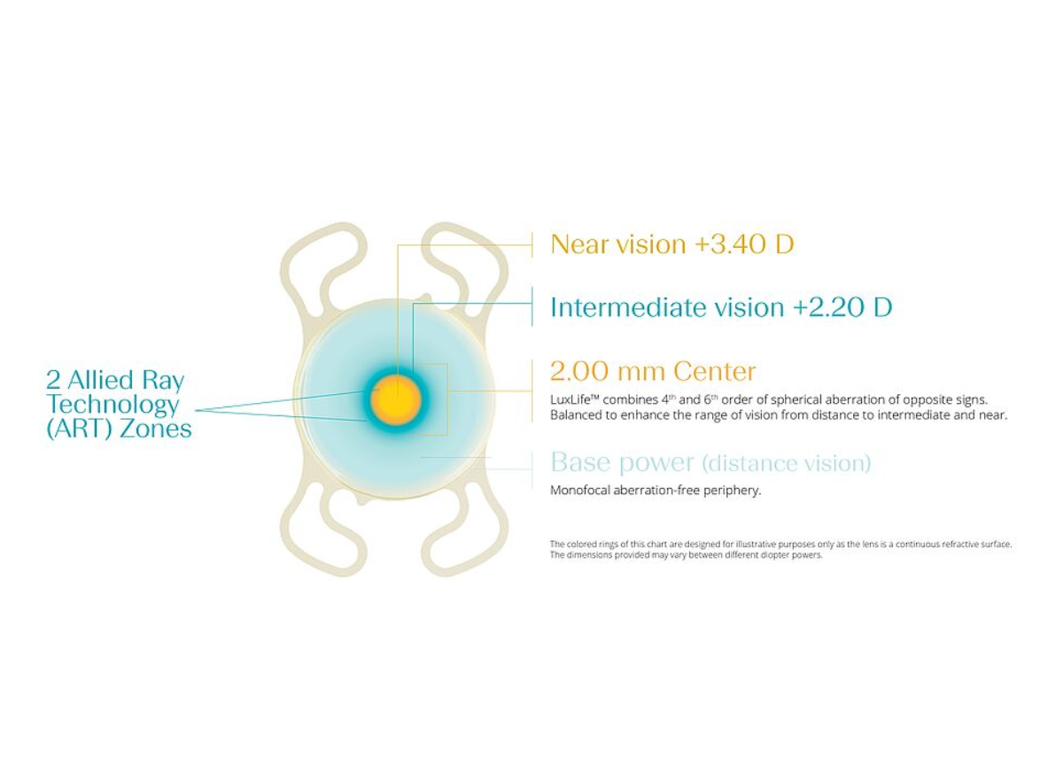 LuxLife™ is our new premium intraocular lens, designed to provide a Continuous Full Range of Vision from distance to near. Its refractive surface, combined with proprietary ART Zones, helps direct light efficiently toward useful vision, supporting high-quality visual outcomes across all distances.