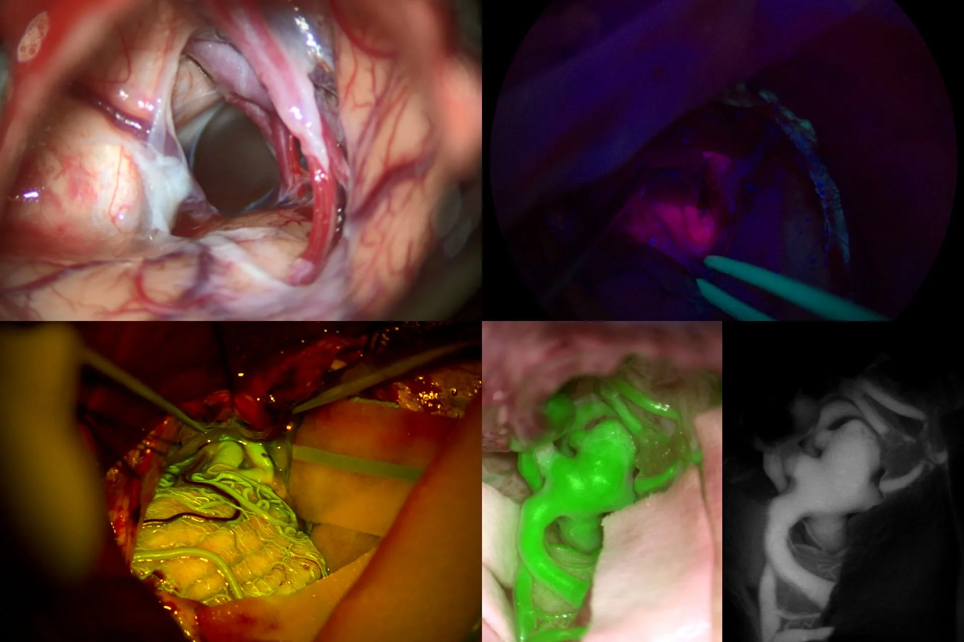 ARveo 8x offers fluorescence options for tissue differentiation, including the GLOW800 Augmented Reality fluorescence application (ICG - Indocyanine Green) and fluorescence modules FL560 (fluorescein) and FL400 (5ALA). GLOW800 integrates near-infrared (NIR) imaging with ICG and white light providing a unified view of natural-colored cerebral anatomy, enhanced by real-time visualization of vascular flow on a 3D monitor. With just a few clicks of a button, you can easily switch between white light and fluorescence views.