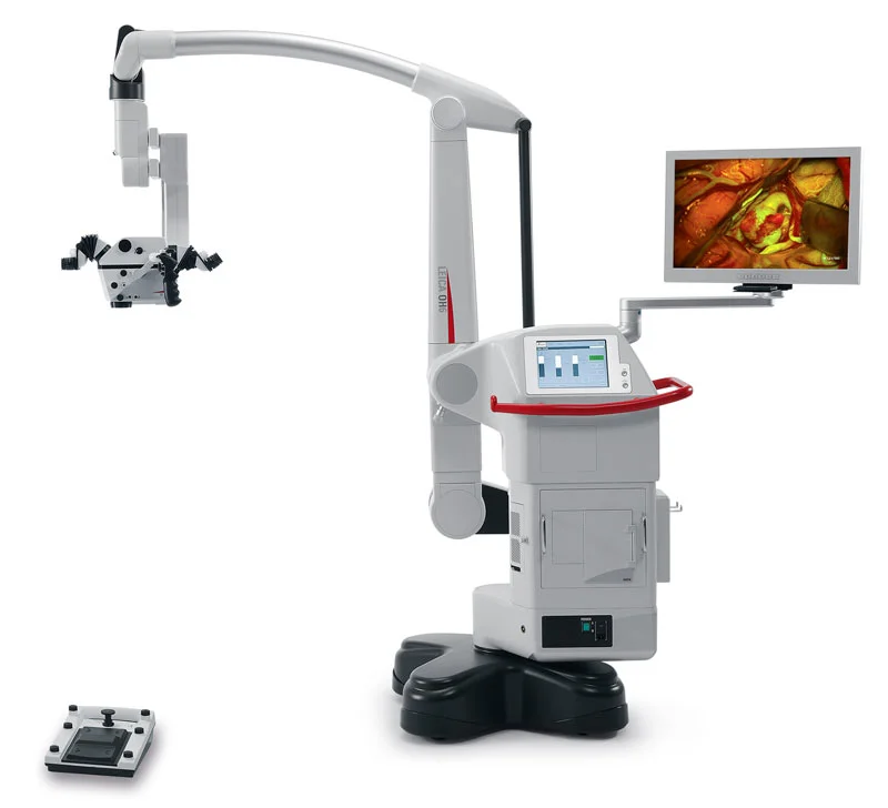 Share the view with your team and easily capture brilliant FL560 fluorescence videos in high definition. HD display of the microscope monitor enables viewing by the whole team in the operating room HD recording technology in both in white light and FL560 mode is ideal for documentation, presentation and teaching of complex cases Mode Control technology activates the correct video display and recording settings that have been optimized for fluorescence and white light modes