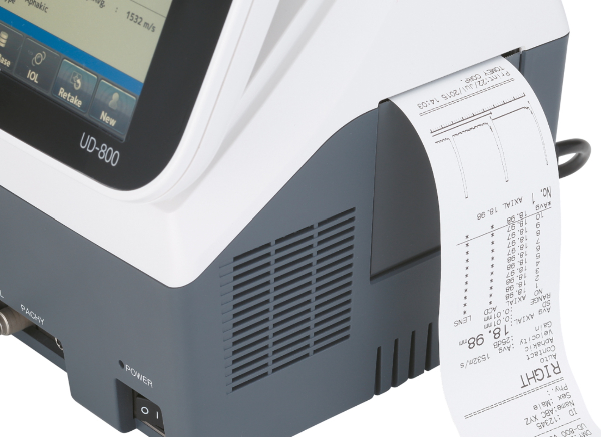 B-scanner, Biometer, Pachymeter, and A-Diagnostic – all in one. The UD-800 was developed to satisfy your expectations and requirements. Features like the new generation of annular array probes, high-resolution touch-screen operation, and data communication via USB or LAN makes this device easy to handle and fast and efficient in operation. Simply choose all your desired features! With its unique 10 MHz 2-ring array B-Scan probe and A-Scan biometry probe, the UD-800 is a fantastic basic tool for a high-end performance.